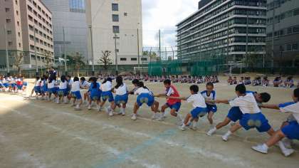 学年種目(つなひき)の練習をしています!掛け声とともに入場!