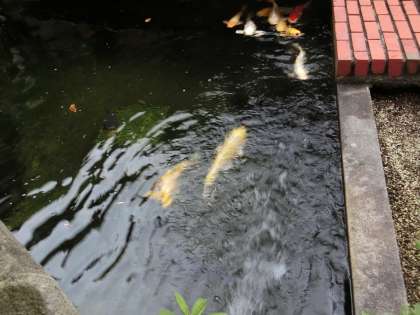 雨が多かったせいで池があふれそうです。