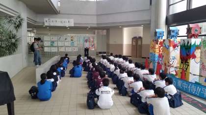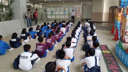 生徒会・女子バスケットボール部・剣道部・水泳部の皆さんは、集合、南大江小学校への移動、地域の方々への挨拶、話を聞く姿勢、何をとっても集団行動ができており、質の高い行動ができていました。