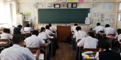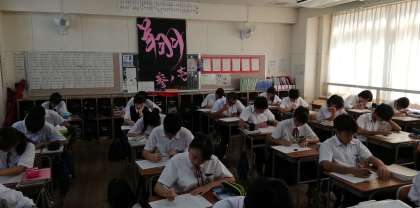 この時間は現在学習している「おくのほそ道」の冒頭部分の暗誦筆記テストを行っています。