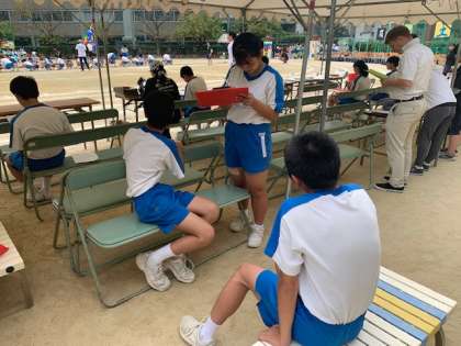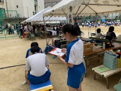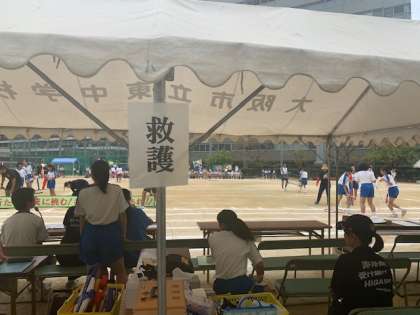 保健委員3年女子が、記録などの救護の補助をしてくれています。