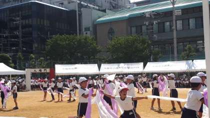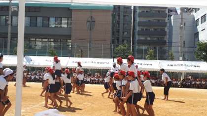 29日(日)は、玉造小学校と南大江小学校が運動会でした。心配された雨は降らず、太陽の日差しが眩しいほどの素晴らしい晴れの下、未来の東中生の元気一杯の声が運動場に響いていました!
