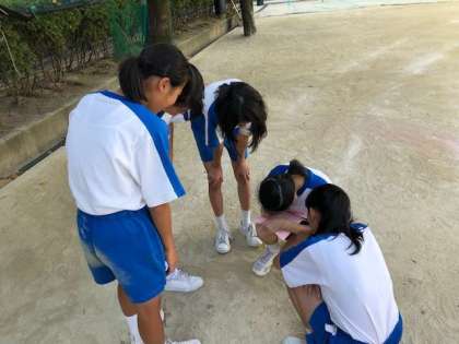 今日から10月ですが、太陽の陽射しが強いグラウンドです。暑さに負けず頑張っています!