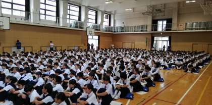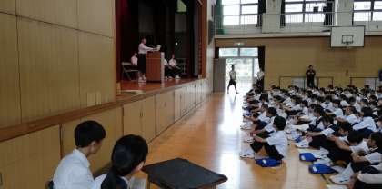 校長先生も全校生徒にまじって、演説を聞いておられます。