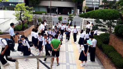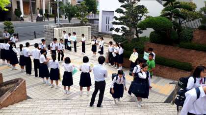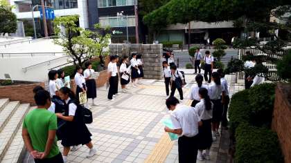正門前では、大きな「おはようございます!」のあいさつの声が響いています。