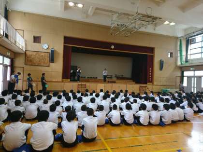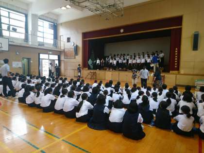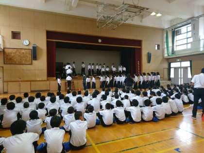入場の仕方や並び順を確認しています。吉木先生・黒木先生の動きに注目し、先生方の指示をしっかりと聞いて動きましょう!