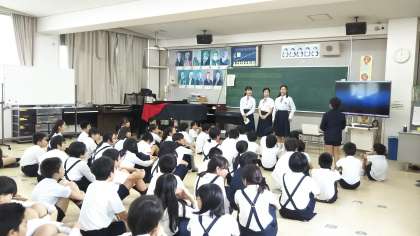 生徒会による学校紹介 中大江小訪問