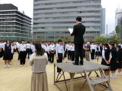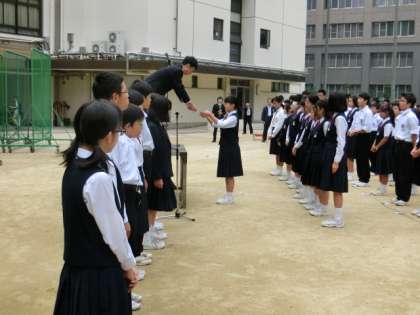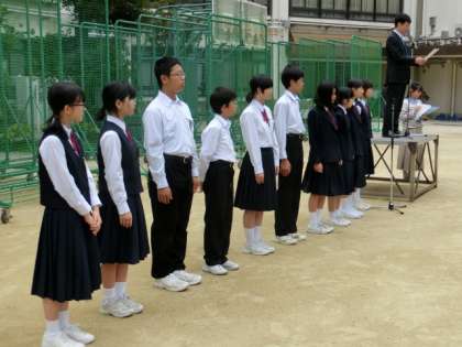 校長講話の前に、恒例の表彰状の伝達式です。総文祭(大阪市総合文化祭)での出展等もあり、今回もなんと45枚もの表彰状がそれぞれに手渡されました。