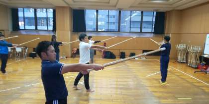 本日、東中学校多目的室を会場として、大阪市中学校剣道指導者研修会が行われています。
