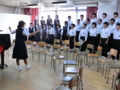 本日の6限目より、各学年・各クラスで合唱コンクールに向けての取り組みが一斉に始まりました。校内様々な場所で少人数で、クラス全部で、男・女に分けて練習がが始まりました。