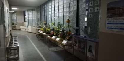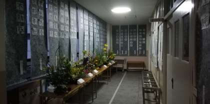 昨日行った華道体験でお花を生けましたが、その後ろには、国語科で書写をした「漢文」が展示されています。