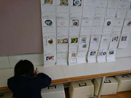 見学している1年生は、熱心に「展示見学感想シート」への記入もすすめています。