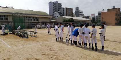 本日、東中野球部は大阪市立市岡中学校において、第3支部中学校秋季軟式野球大会の第2戦に臨みました。相手は大阪市立大正西中学校でした。