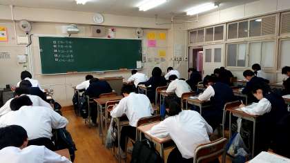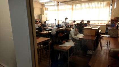 3限目は英語です。真剣にリスニングテストに取り組んでいます!