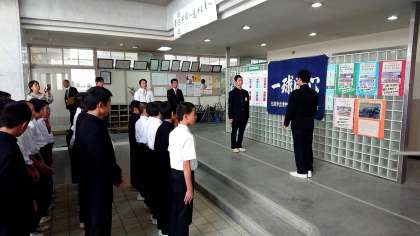 本日昼休み、その全国大会へ出発するにあたっての「出発式及び壮行会」を行いました。