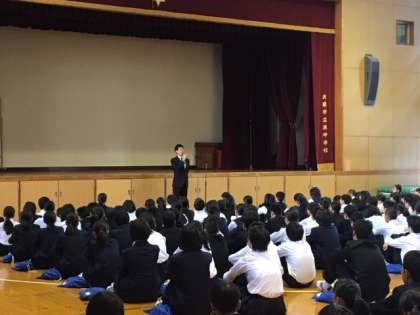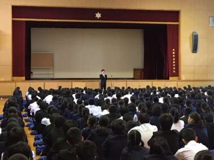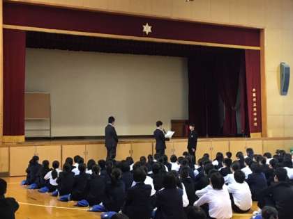 表彰状の伝達後、校長先生からお話がありました。技術部が全国大会へ出場が決定したこと、そして、野球の代表として全国大会へ出場した生徒から結果報告もあり、大きな目標に向かって努力することの大切さについてお話しされました。