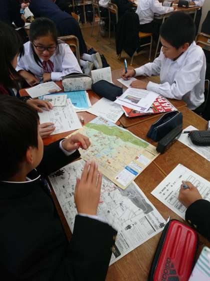 教室に戻り、調べ学習の続きや、班でルートの再確認をしています。
