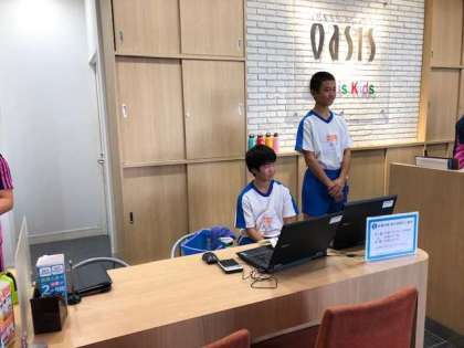 受付業務とトレーニングマシーンを使った体験を行なっています。