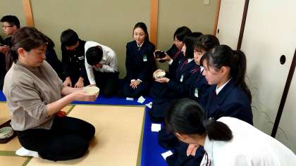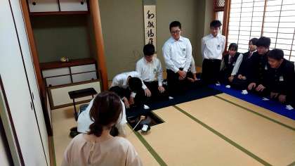 そして、みんなにもお茶が行き渡り、作法通りの手順で、美味しくお茶をいただいております。
