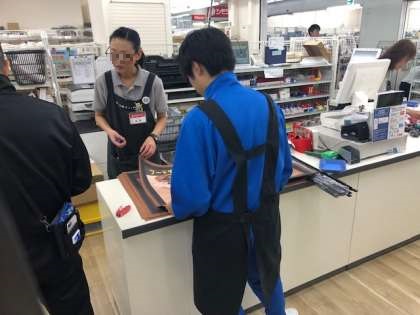 販売業関係の職場です。広告の作成、品出しなどに取り組んでいます。