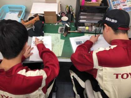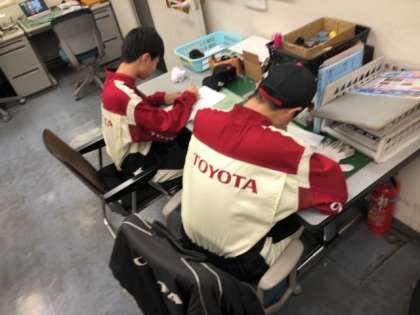 自動車メーカーの販売店ではタイヤ交換のお手伝いをさせてもらい、その感想を記入しています。