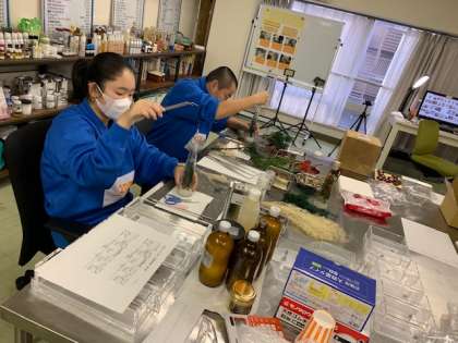 ハーバリウムをつくる体験をしています