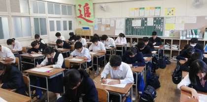 本日放課後、3年生では国語科の「おくのほそ道 暗唱筆記テスト」の再テストを実施しています。