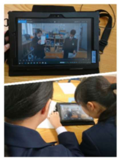 練習では、タブレットで動画を撮り、自分たちで見て、良かったところと改善したほうがよいところを発表しました。