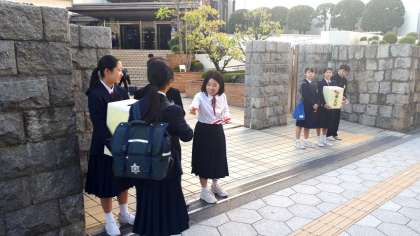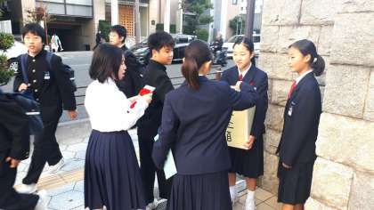 生徒会の皆さんが、正門前で、募金活動を行っています。