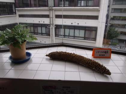 2枚目は、以前東中百景で【なんじゃこりゃ】と題して、船場中から移設されたモニュメント脇のソテツから採集した、ソテツの雄花です。