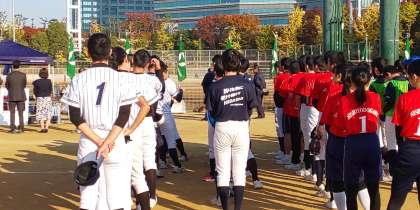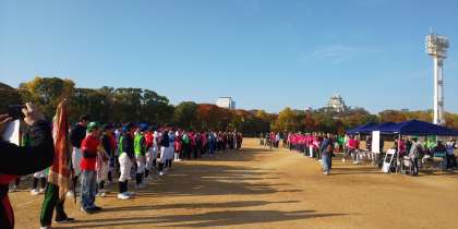 晴天の中、大阪城公園野球場・太陽の広場において、『大阪市中学生親善キックベースボール大会・ソフトボール大会』が行われます。
