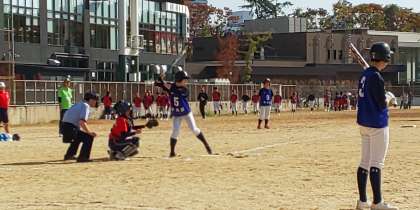 東中ソフトボールチームは、1回に大量得点を挙げ、見事、西淀川区代表に勝利しました。