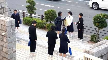 今朝も生徒会が募金活動に取り組んでくれています。まもなく全校集会です。