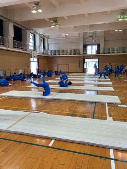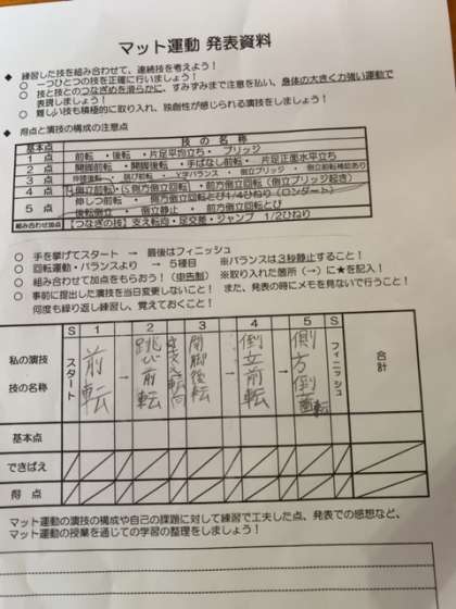 1年生ではマット運動の単元に入っています。
