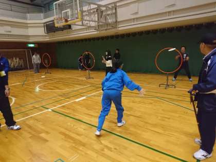 フライングディスク、卓球バレーをしています。他校の友達もできました!次はボッチャです、