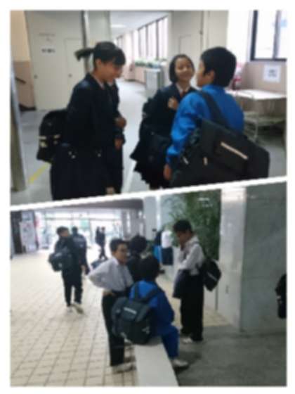 無事に帰校し、終学活をしています。先生方に「戻りました」と報告し、感想などを話しました。