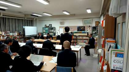 説明は教育委員会施設整備課の担当者から、地域からは本校を支えていただいておる代表の方々に加え、多くのPTA役員の方に来ていただいております。