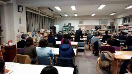 本日東中学校の図書室では、今後の東中学校の生徒数が増えていくことにともなう新校舎の増築計画の概要説明会が行われています。