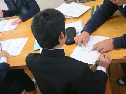 キャビネット図の書き方を田阪先生に教えてもらっている生徒もいます。がんばれ東中生!