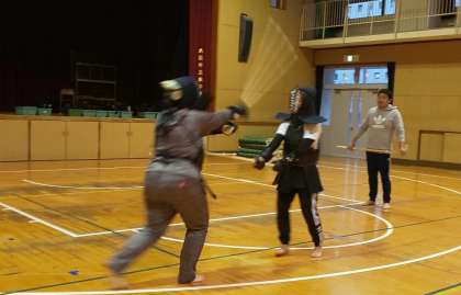 期末テストの放課後、東中体育館では『大阪市中学校剣道研修会』が行われています。