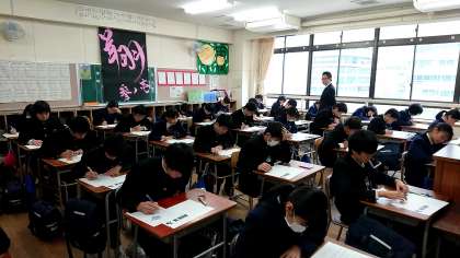 2学期期末テストの最後の教科「音楽」のテストが始まりました。授業で学習した内容をしっかり思い出して解答してください!