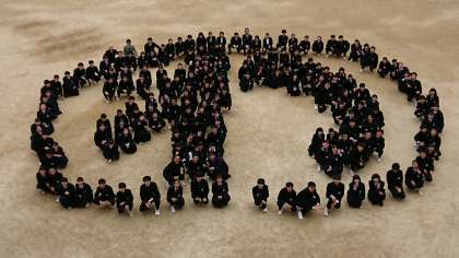 32期生学年のスローガンである「わを以て貴しとなす〜話・輪・和〜」から、ひらがなの「わ」を輪で囲むという構図での写真を撮影しました。