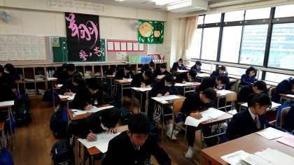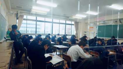 進路選択に向け2学期の大詰めを迎えています。1限目の英語のテスト中です。真剣にリスニングテストに取り組んでいます。