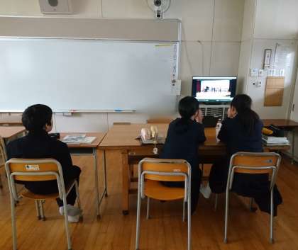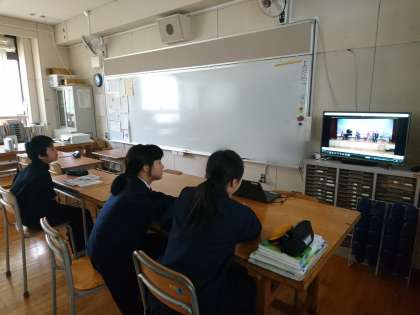 11月21日にふれあいデイキャンプに参加していた生徒は、同日に校内で行われた芸術鑑賞の様子を収録したDVDを観ています。