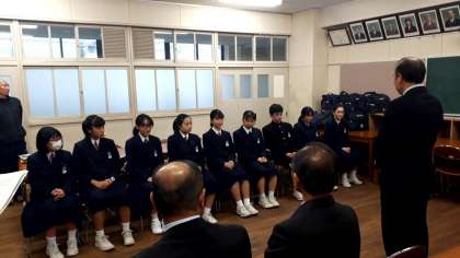 夏休みの社会科の宿題で実施した「税の作文」において、納税協会から表彰式を行うために多くの方に来ていただいております。東中学校からは9名の生徒が表彰されることになりました。