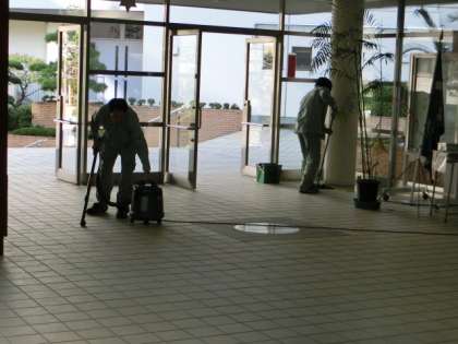東中の顔でもある正面玄関扉をはじめホールをより一層美しく磨き上げてくださっている管理作業員さん。