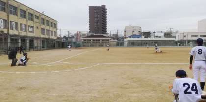 本日、東中野球部は大阪市立平野中学校にてWBC(ウィンター・ベースボール・カップ)大会のリーグ戦第2戦に臨みました。