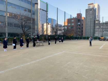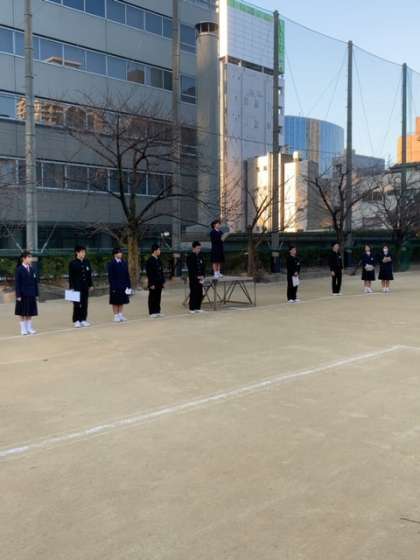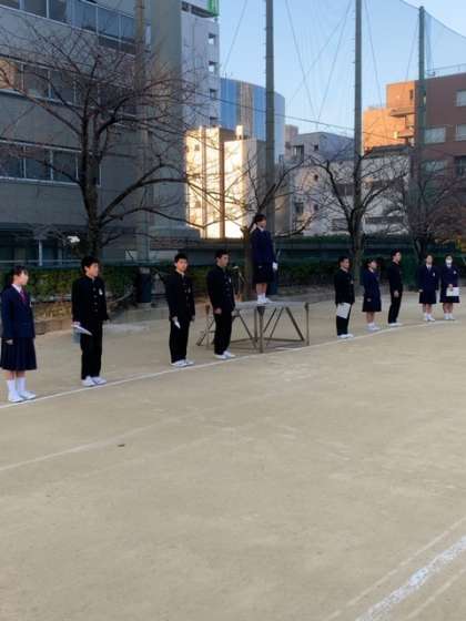 3年生体育委員は本日、明日の球技大会に向けて朝早くから式典の練習を行なっています。
