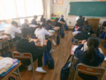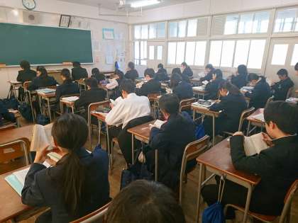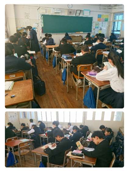 静かな教室で、それぞれが読書をしています。