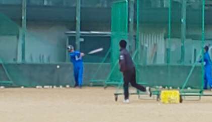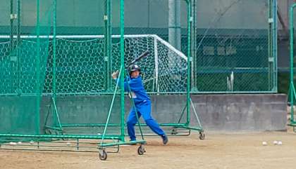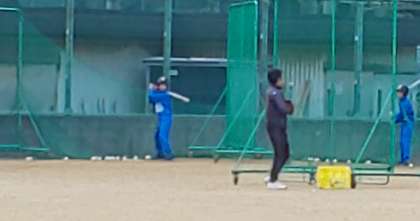 入念にウォーミングアップに取り組んだ後、バッティング練習に取り組んでいます。